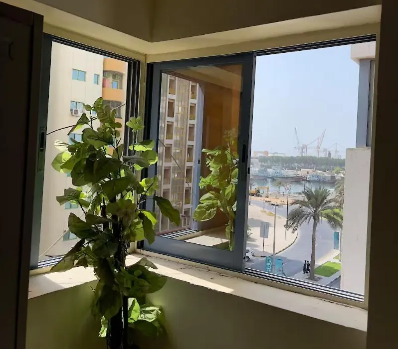 从这个住处到Al Jazeera 公园,步行只需12分钟,距离Centeral Souq650米. Apartment Near Bus Station & Market With Sea View 沙迦的客房设有保险柜,阳台 和写字台.